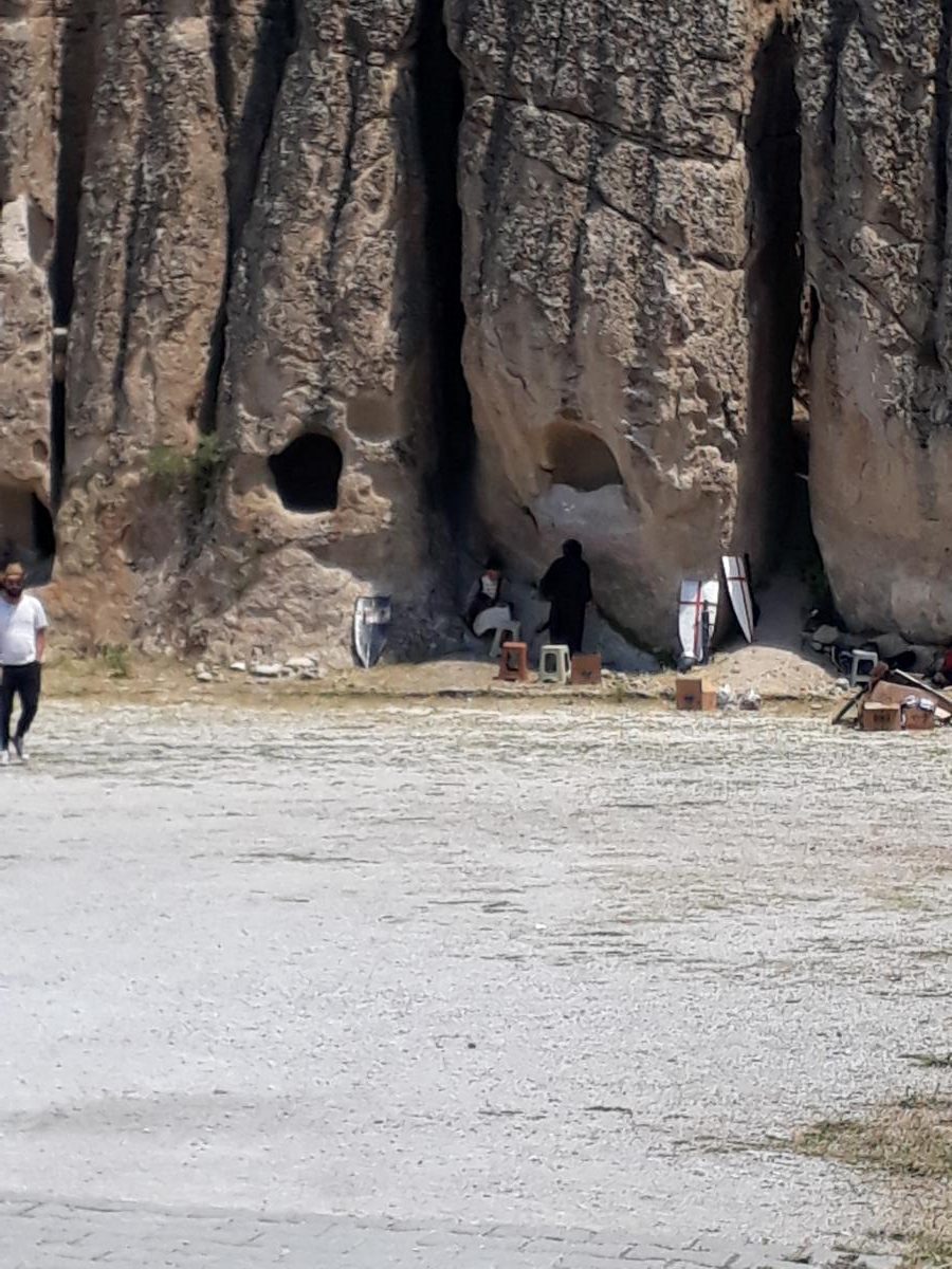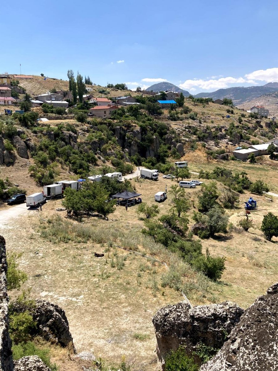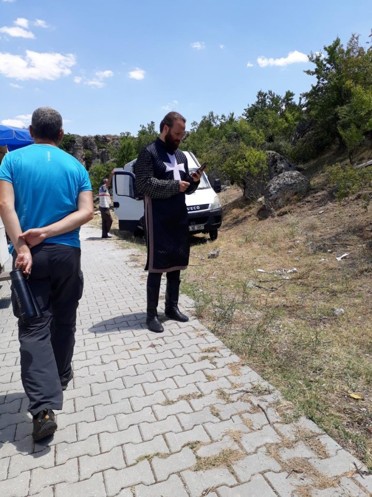 Sonrasında ise asıl yapıların olduğu yerde geziyoruz tarihi mekanı. Burada bir dizi çekildiğinden etraf biraz kalabalık. Set ekibi, haçlı figüranlar bekleşip duruyorlar, selam verip gezmeye devam ediyoruz. Çocuklar gülüşüp bağrış-çığrış dolaşırken, çekim olduğundan sessiz olmamız konusunda uyarılıyoruz.