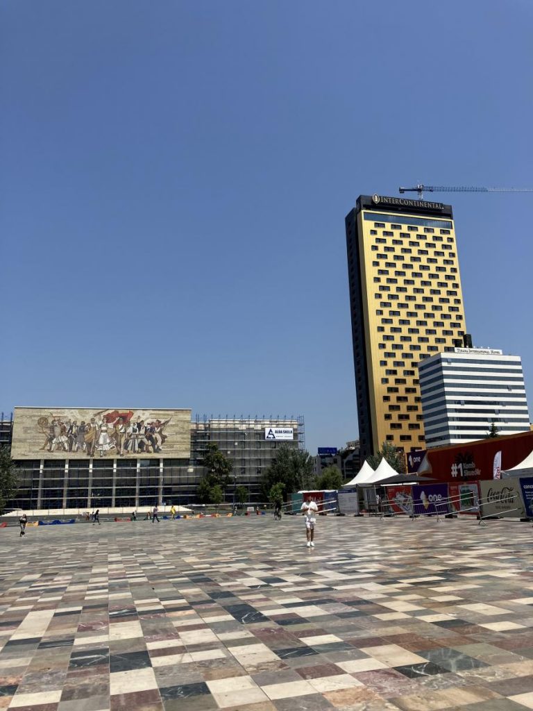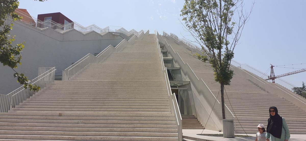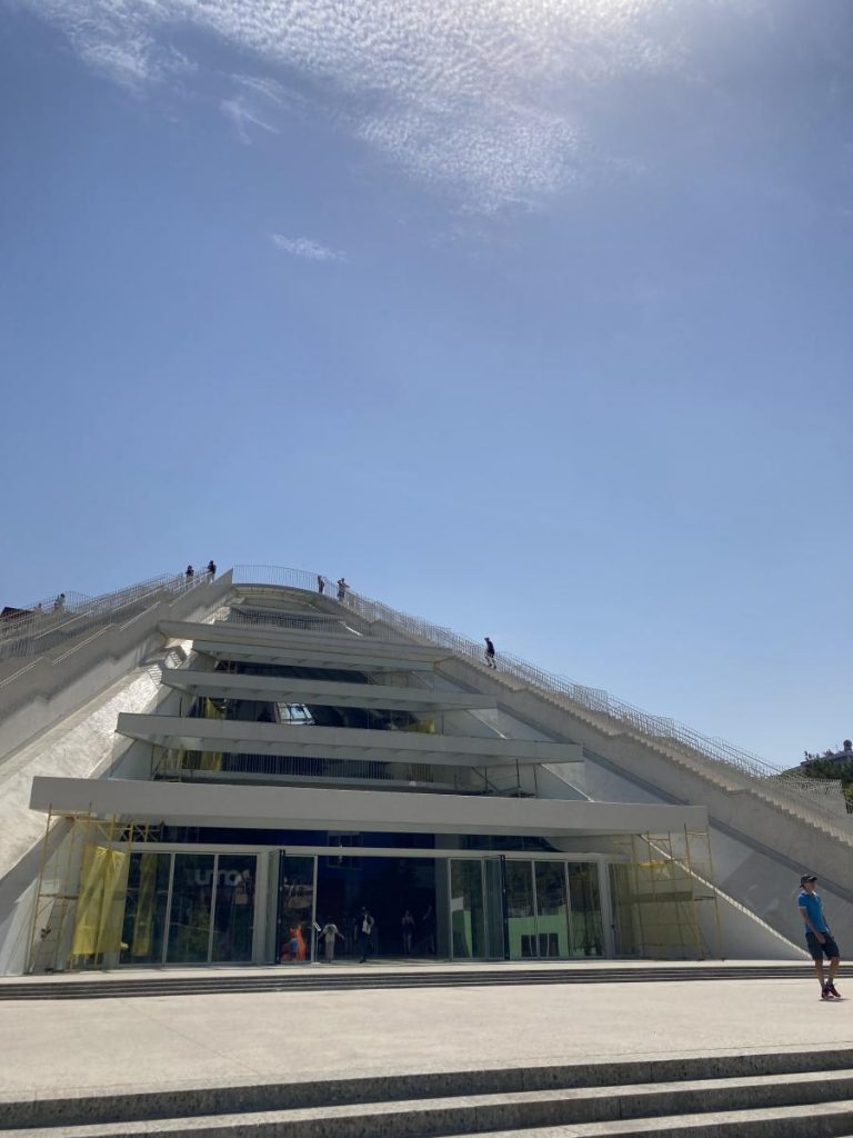 Ayaklarımız bizi Tiran Piramidi ne getirdi. İlk olarak 1988 de Stalin hayranlığıyla bilinen komünist Enver Hoca Müzesi adıyla açılmış. 1991 yılında ülkenin demokrasiye geçmesiyle, konferans merkezi ve sergi mekanı haline dönüştürülmüş. Renkli kutular şeklinde kafeler, stüdyolar ve atölyeler mevcut. Bu alanların çoğu 12-18 yaş arası çocuklara yazılım, robotik, animasyon, müzik, film gibi dallarda ücretsiz eğitim veren Tumo ya ait.