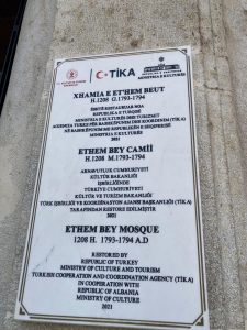 Meydanın simgelerinden biri Hacı Ethem Bey Cami, 18-19. yüzyıllarda Tiran da inşa edilen 8 büyük camiden günümüze kadar sağlam olarak ulaşabilen tek Osmanlı Camisi. Caminin içi kalem işi nakışlarla süslü.