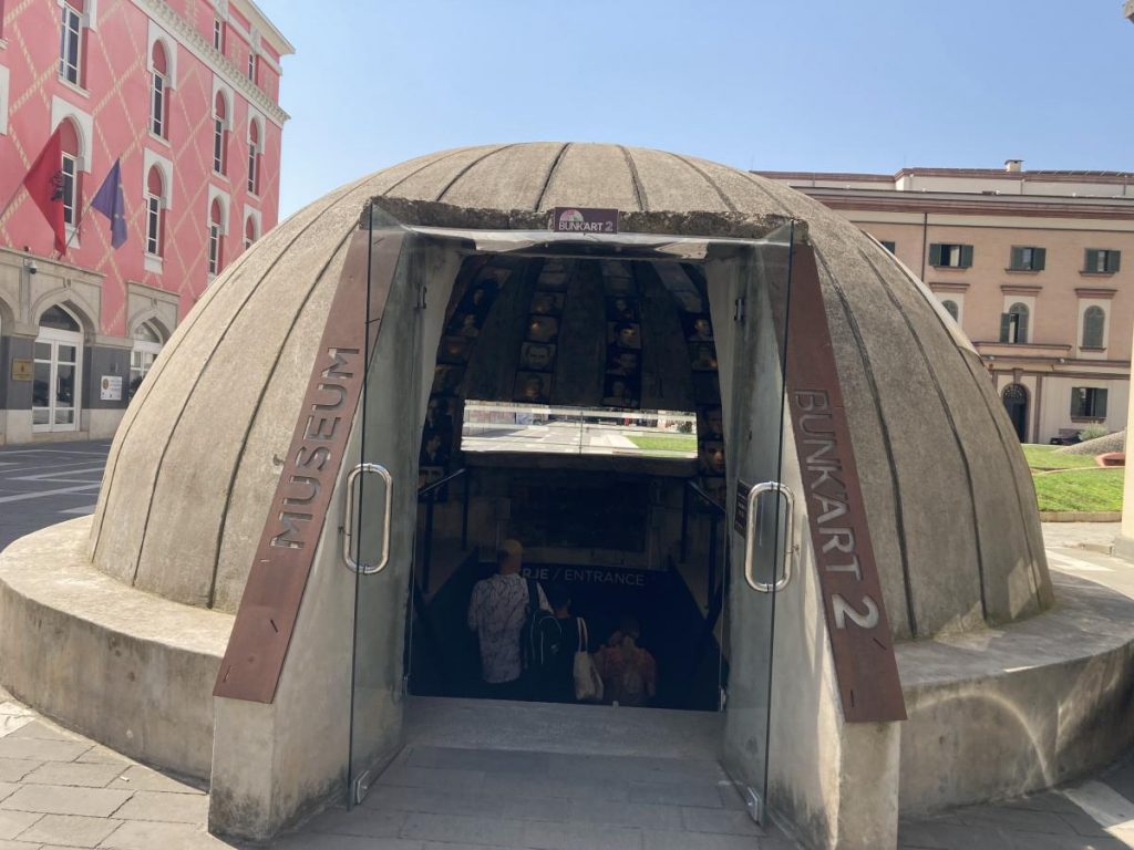 Arnavutluk’taki komünist rejimin gizemlerini ortaya çıkaran Bunkart 2 müzesi karşımıza çıkıyor. Komünist dönemde nükleer saldırıya karşı inşa edilmiş. Giriş ücreti 1000 leke. 9 kişi olduğumuzdan dışardan bakmakla yetindik.