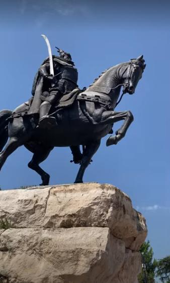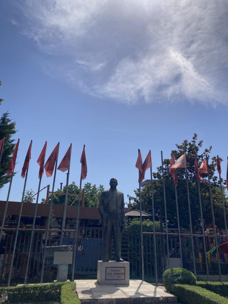 Biraz daha yürüyünce Luigj Gurakuqi adında Arnavut bir yazar ve politikacının heykeliyle karşılaşıyoruz. Kendisi Arnavut Ulusal Uyanışının önemli bir figürüymüş.