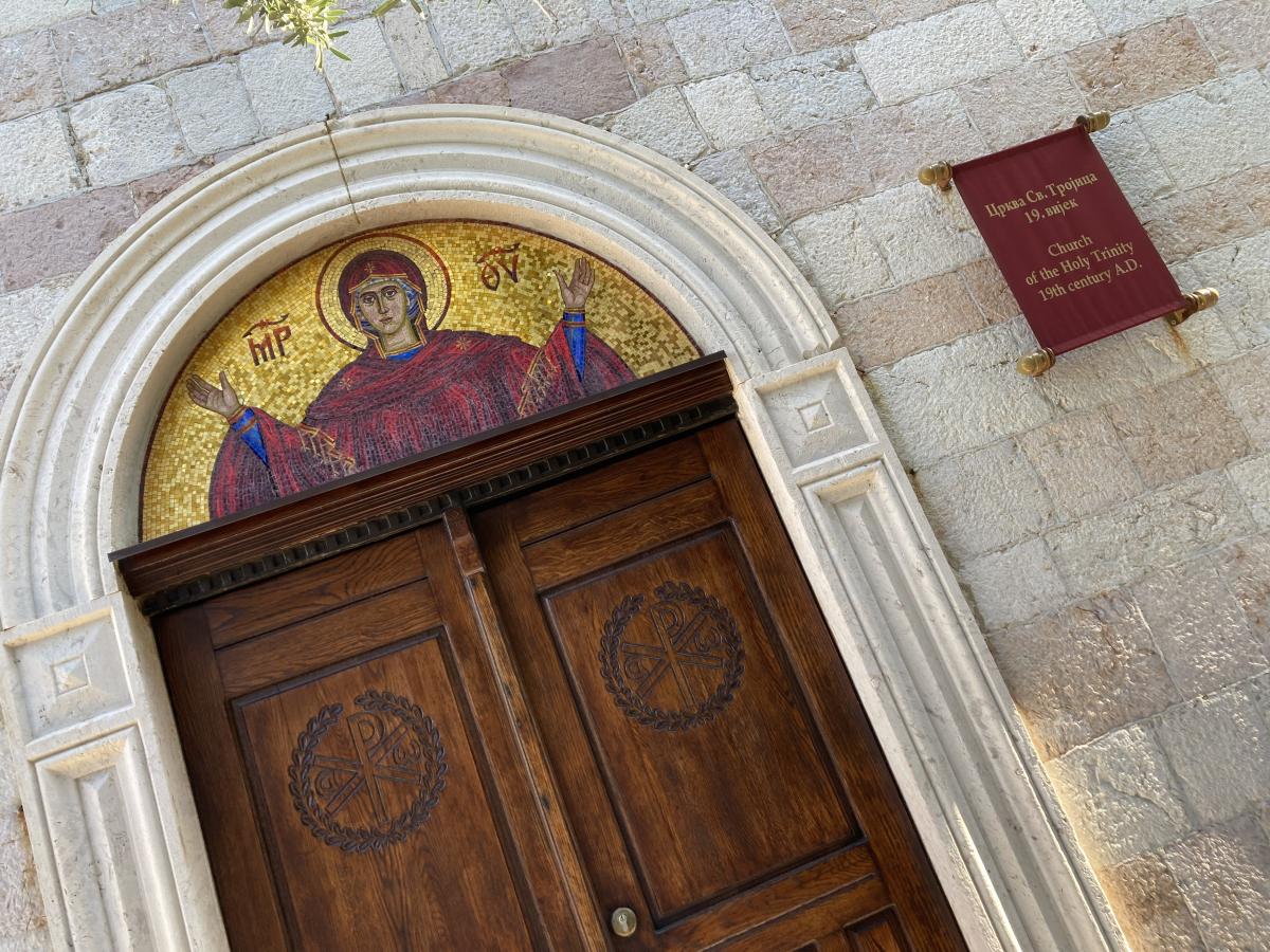 Old Town’ın tarihi dokusunu yansıtan Holy Trinity Kilisesine dışardan baktık. Dış cephesindeki süslemeler, kabartma ve freskler dikkat çekiciydi.