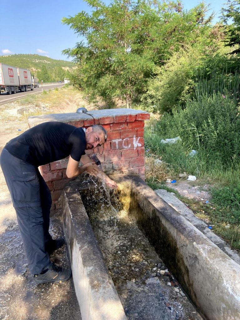 Yol kenarında bir amcanın çay sattığını görünce hem dinlenmek hem de yakında bulunan çeşmeden sularımızı doldurmak için ufak bir mola verdik. Bu mola gerçekten bizi tazelemişti zira su buz gibiydi.