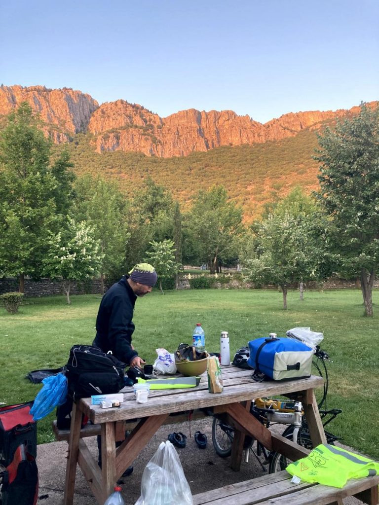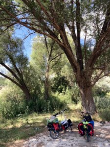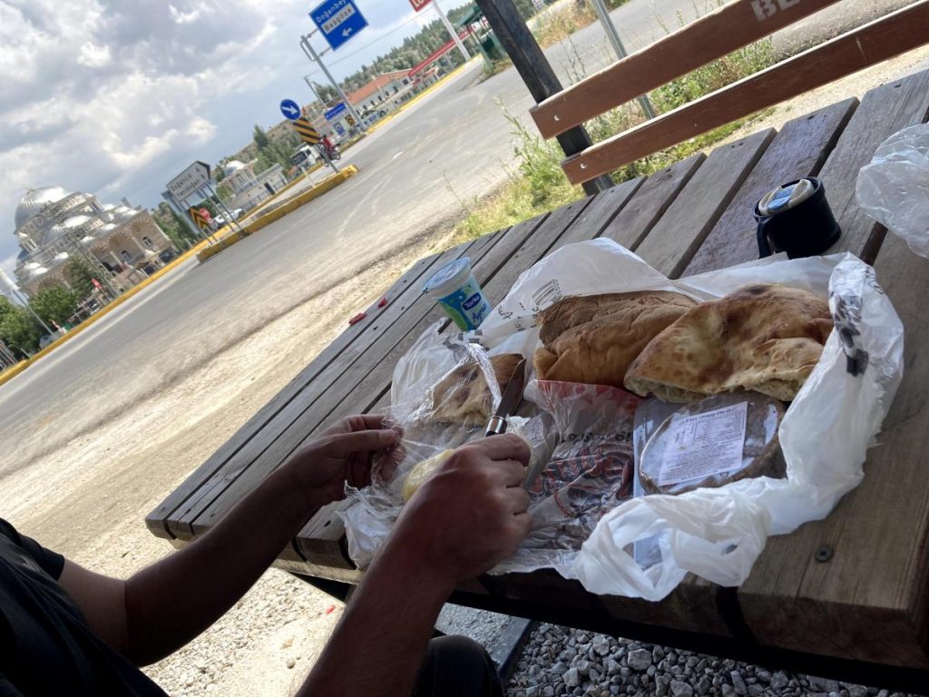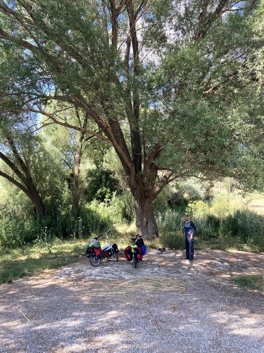 Öğlen olmuş ve biz neredeyse günlük hedefimize ulaşmıştık. Birkaç km’lik inişten sonra bir dinlenme tesisinde mola verdik ve su ikmali yaptık.