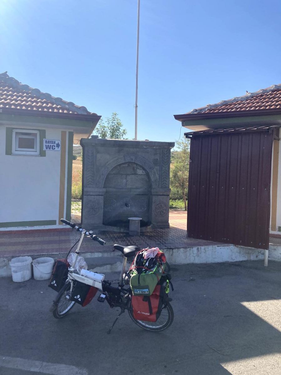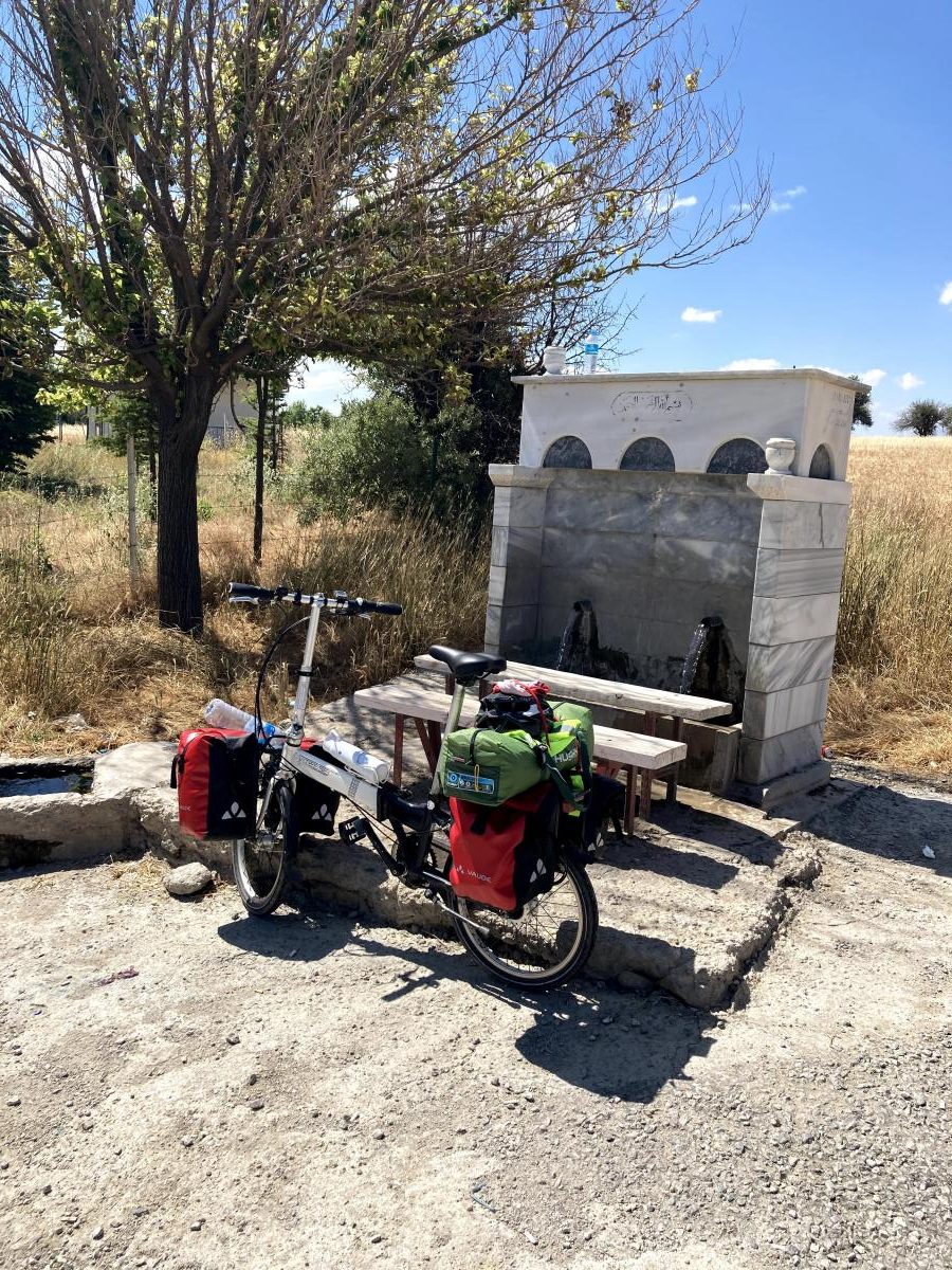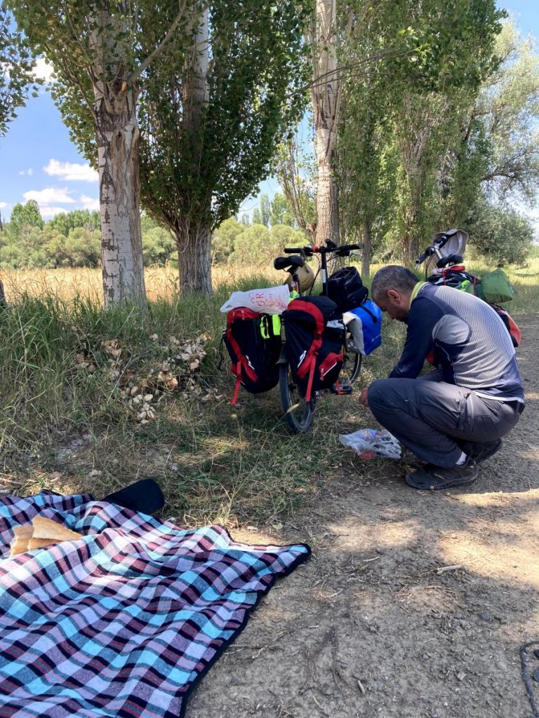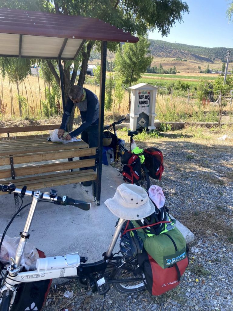 Yaklaşık 15 km pedalladıktan sonra saat 9 sularında bir çeşme başında kahvaltımızı yapıp soluklandık.