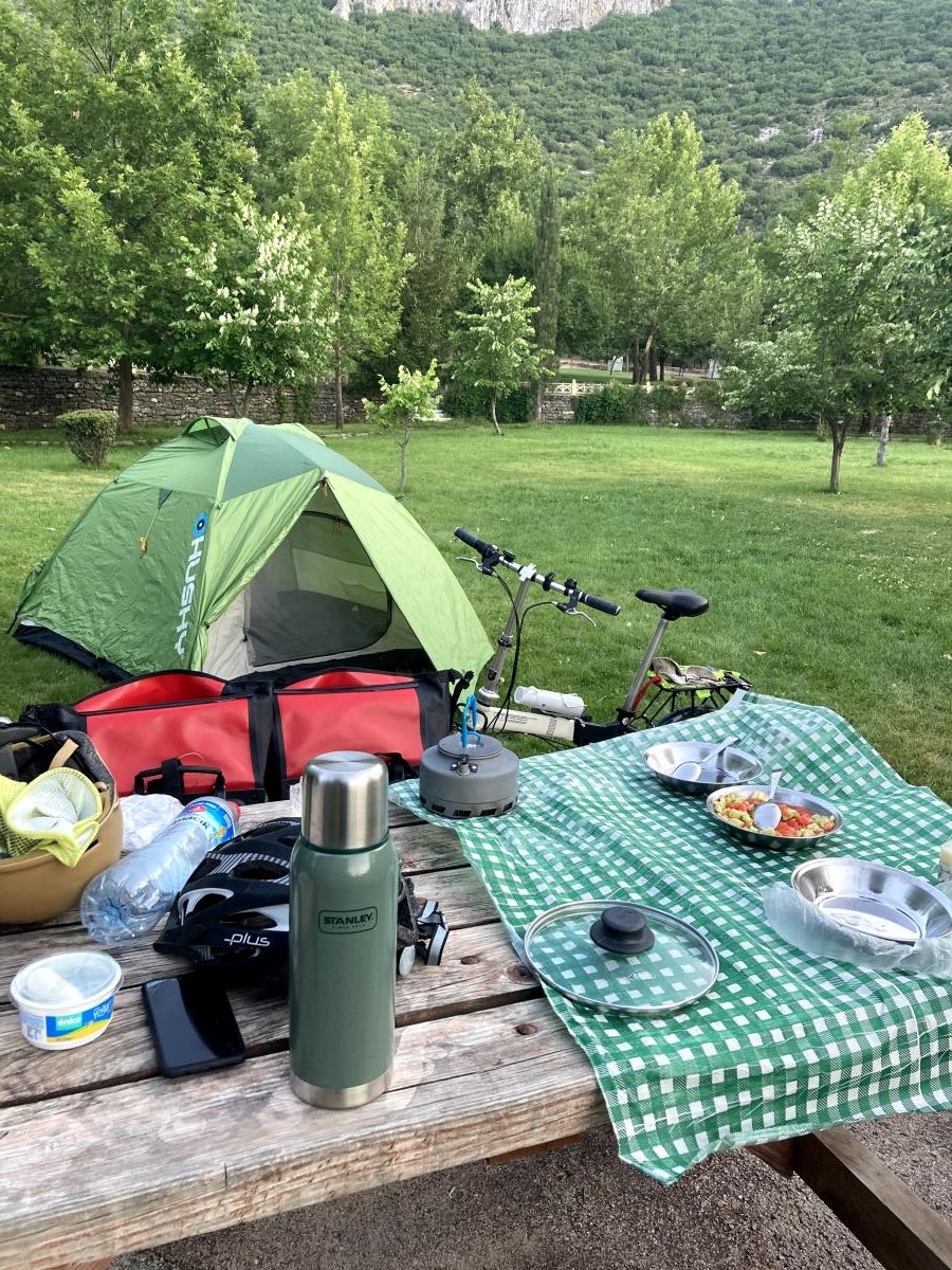 Gün sonunda 7 buçuk saat pedallayıp, 994 mt tırmanışlı 94 km yol yapmıştık. Buna kendimiz bile inanmamıştık zira turun başında katlanır bisikletle bu kadar mesafeyi bu yüklerle gidip, bu kadar rampa çıkabileceğimiz aklımızın ucundan bile geçmemişti. Gezgin ve bisiklet turcularından çokça duyduğumuz “siz yola çıkın gerisi kendiliğinden gelir” sözünü tecrübe edip sindirmiş olduk.